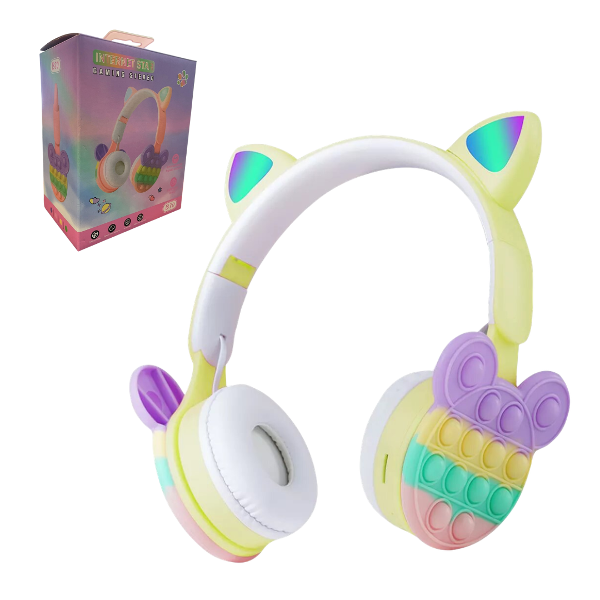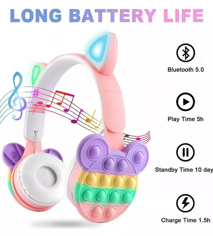 -Bubbles Fidget auriculares – Creativamente combinado con elementos pop fidget en el lado del auricular, cuenta con un montón de burbujas sensoriales que ayudan a relajarte presionándolas mientras estás escuchando música o viendo videos. Un excelente auricular BT así como un juguete perfecto para aliviar el estrés.