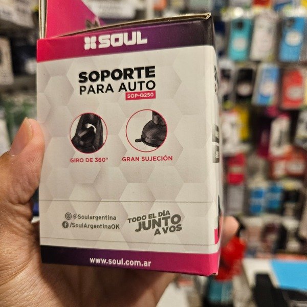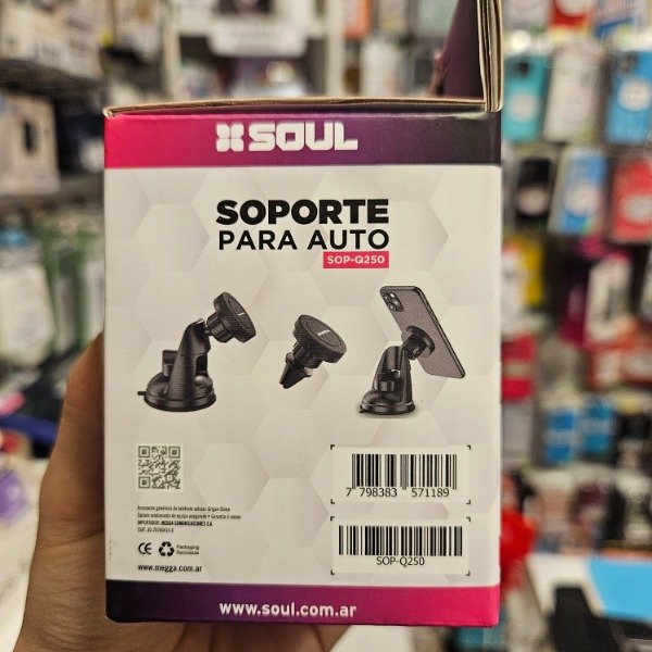 Soporte para celular con sopapa , tiene sistema de iman , trae un accesorio para que el teléfono se pegue.